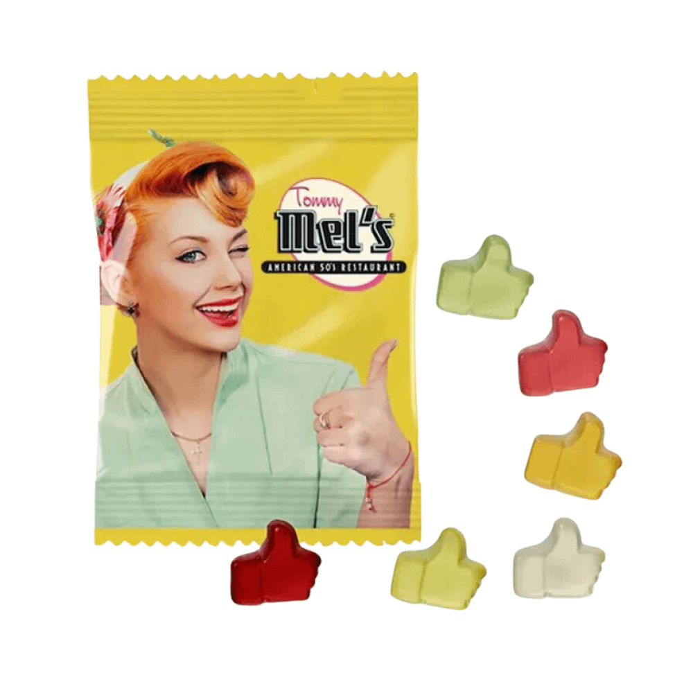 Medidas Bolsa de 10 g. caramelos con formas: 85 x 60 mm.