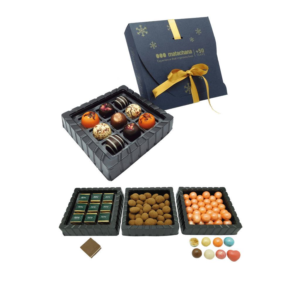 Relleno: almendras con chocolate, cortados, cho-Crunch o deli-chocolates.