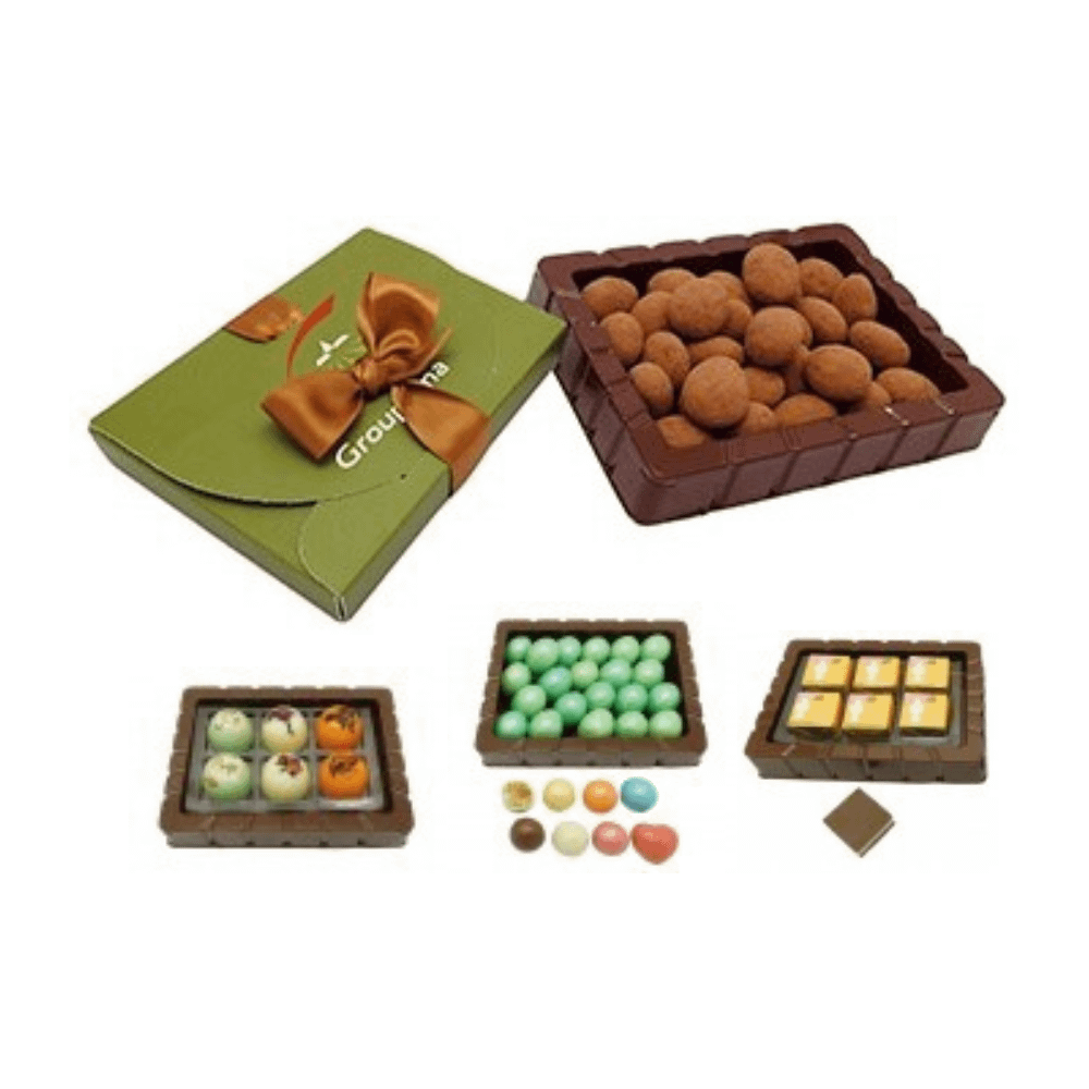 Relleno: almendras con chocolate, cortados, cho-Crunch o deli-chocolates.