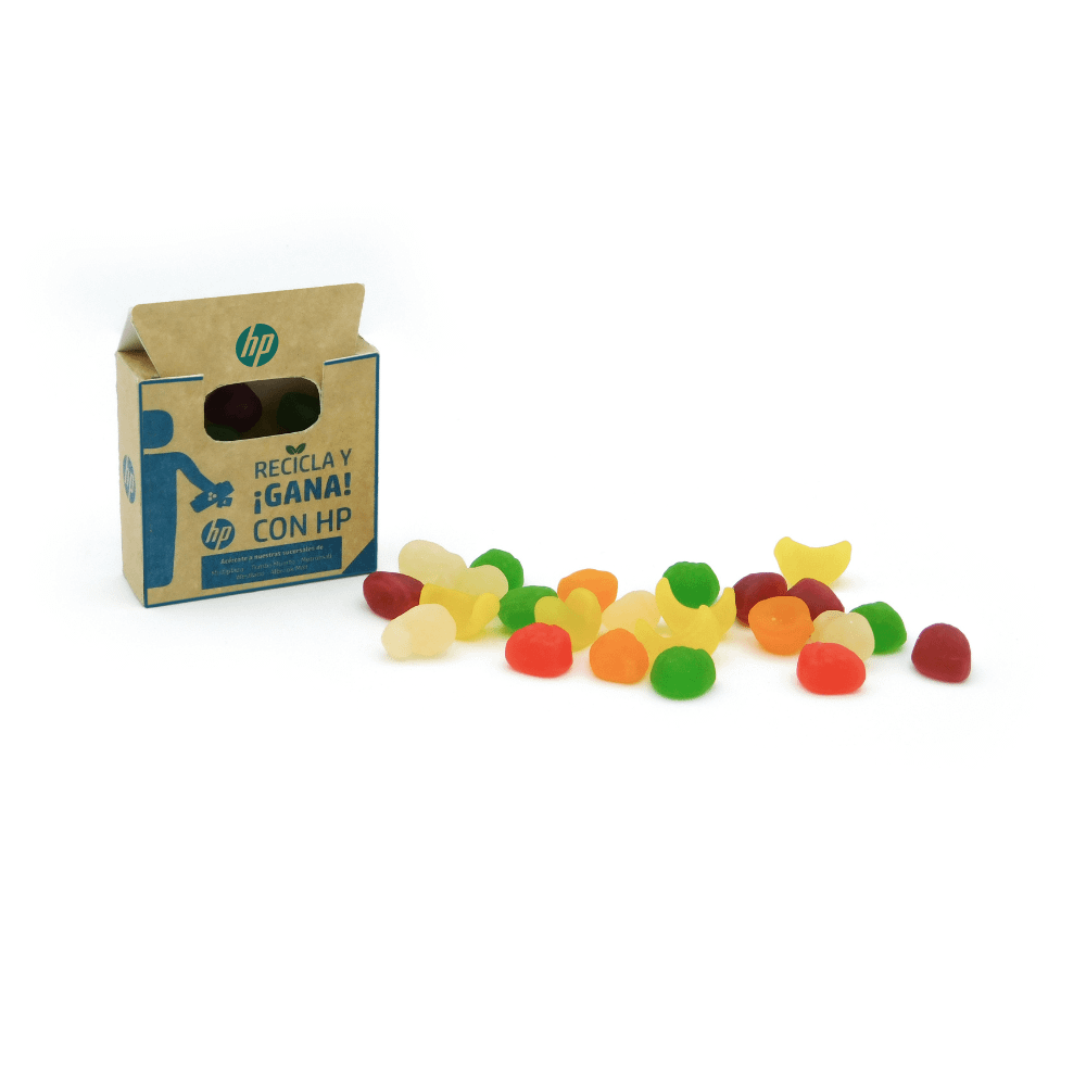 Escoger relleno entre: perlas de goma, mini-frutas de goma o jelly beans.