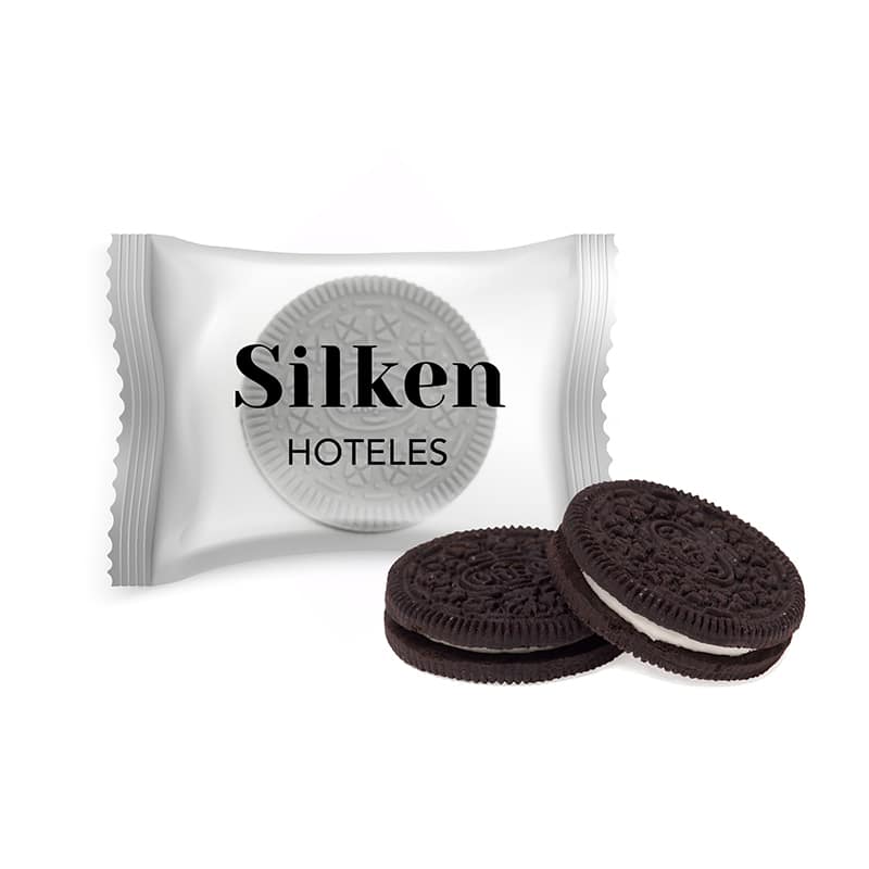 Con tu logo impreso a todo color sobre papel blanco o transparente (hasta 3 colores), estas Oreo® se convierten en un producto promocional personalizado que combina sabor, originalidad y diseño en un solo bocado.
