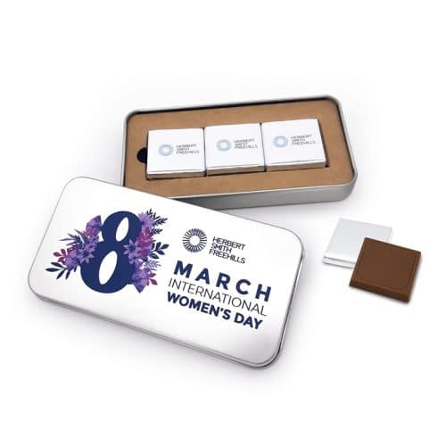 En Dolce BCN te ayudamos a visibilizar tu compromiso con la igualdad y el empoderamiento femenino el próximo 8 de marzo. Nuestra elegante lata metálica personalizada es la opción perfecta como regalo corporativo o detalle conmemorativo para el Día Internacional de la Mujer.