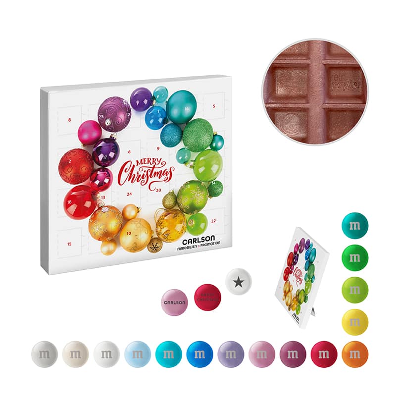 Con la posibilidad de elegir entre 15 colores diferentes, podrás adaptar los caramelos a los colores de tu marca, reforzando tu visibilidad en cada dulce detalle. Presentado en un packaging moderno, compacto y 100 % reciclable y degradable, este calendario es ideal para regalos de empresa, campañas promocionales o eventos navideños.