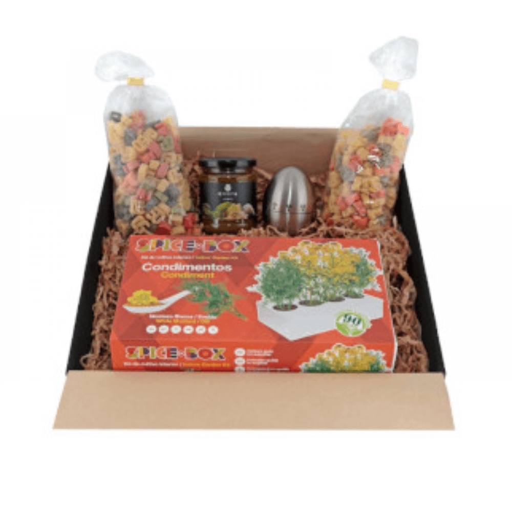 Contiene: 2 bolsas de pasta, salsa pesto a la Genovesa 180 g., temporizador forma de huevo, Set de cultivo de condimientos a elegir entre: Mostaza blancay eneldo/Perejil, albahaca, oregáno y cilíndro/Flores comestibles. Consultar otros sabores.