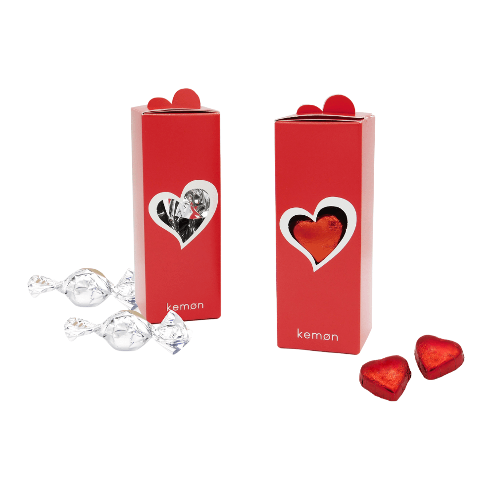 Contiene: 2 bombones lazos o 2 bombones corazón