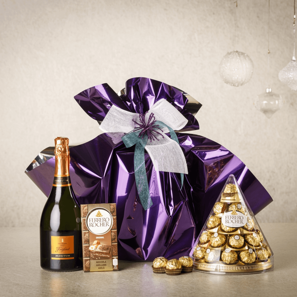 1 Bot, Cava Brit natura Meritum de Freixenet Gran Reserva de 75 cl, 1 Estuche Bombones Ferrero Rocher 25 Unidades y 1 tableta Chocolate con leche Ferrero Rocher 90 g.