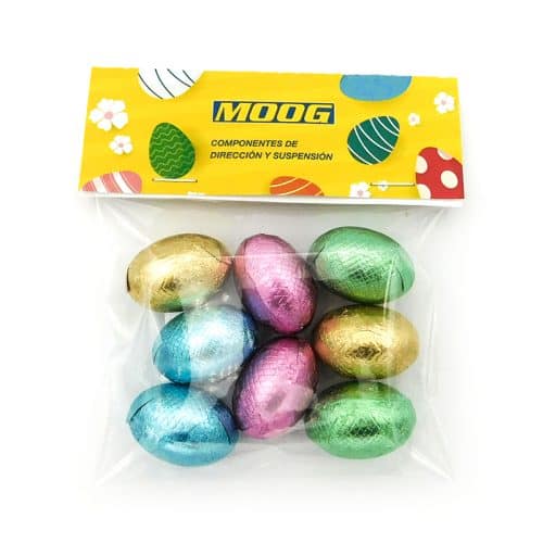 Estas bolsas de Pascua con chocolate destacan por su bajo coste, entrega rápida y alto impacto visual, lo que las hace ideales para campañas de fidelización, eventos promocionales o acciones de marketing directo.